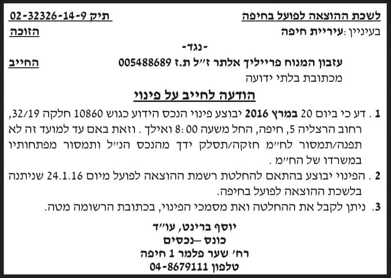 מודעת פינוי בעיתון