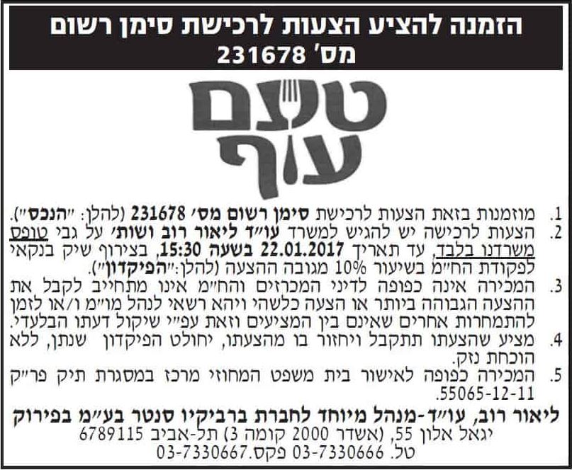 פרסום הזמנה להציע הצעות לרכישת סימן רשום לדוגמא