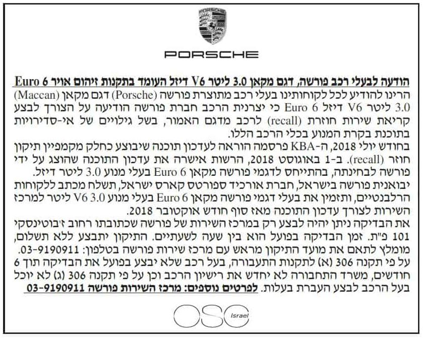 מודעות ריקול לרכב לדוגמא